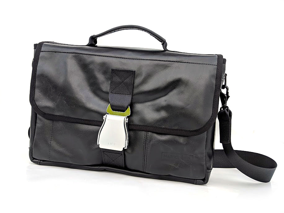 A Carry-On Messenger for your next travel adventure. This minimalist design carries your essentials and keeps all your items well organized. Each bag is made from the seat leather of an Boeing 777HD Air Canada Aircraft.