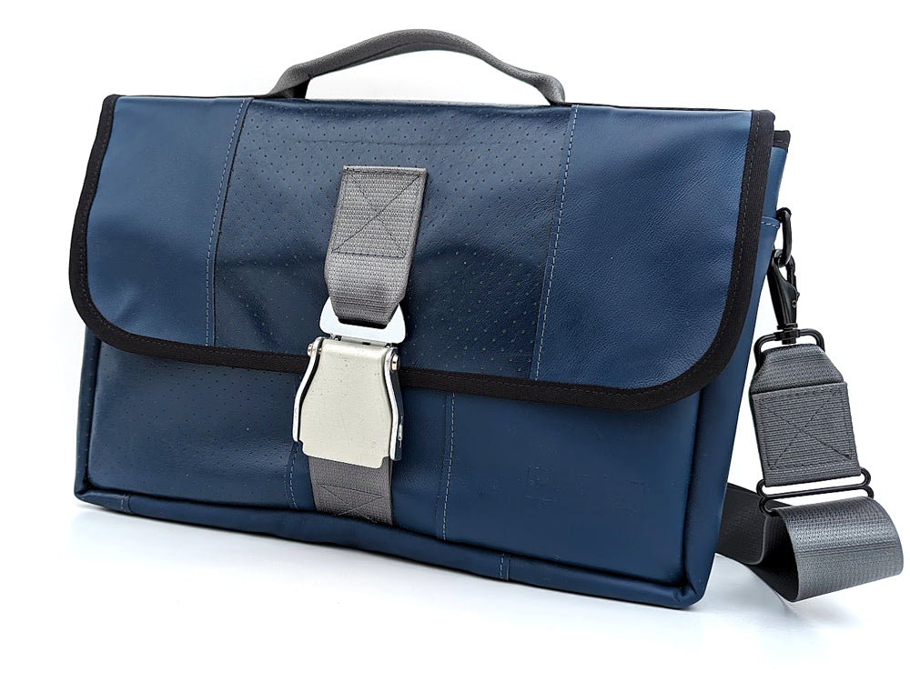 A Carry-On Messenger for your next travel adventure. This minimalist design carries your essentials and keeps all your items well organized. Each bag is made from the seat leather of an Airbus 319-100.